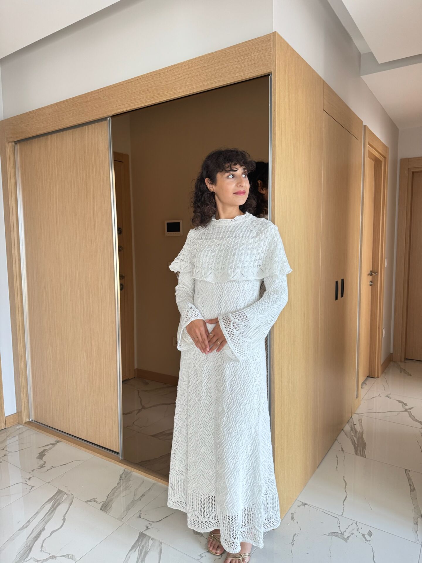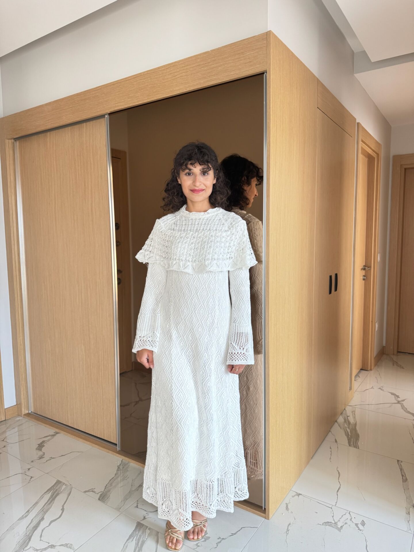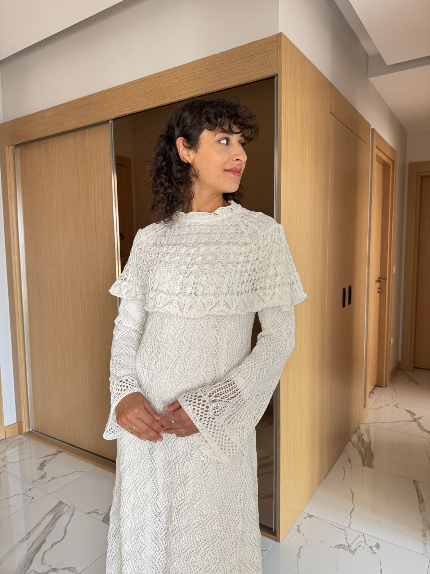 Ajurlu Triko Elbise Bej