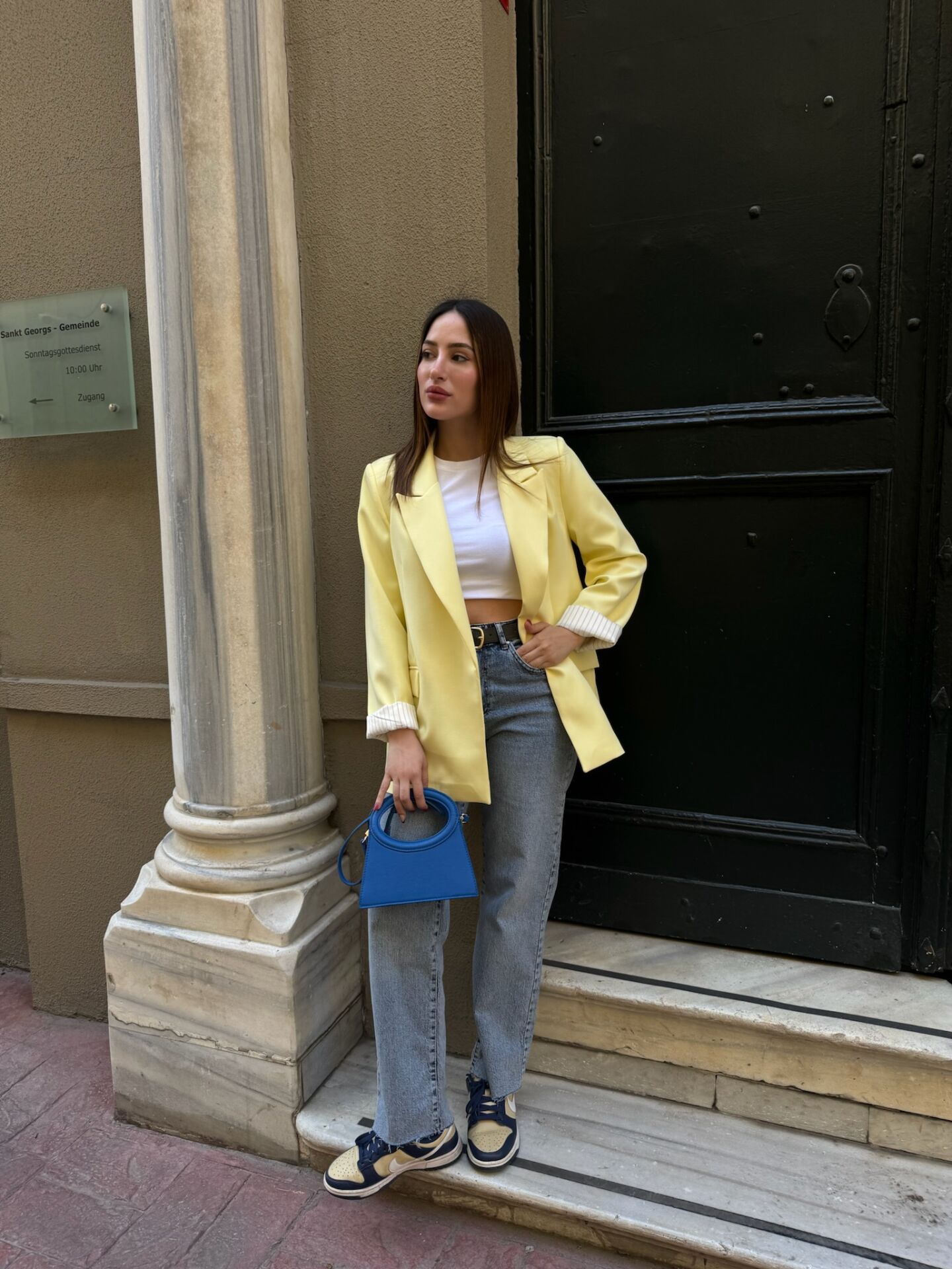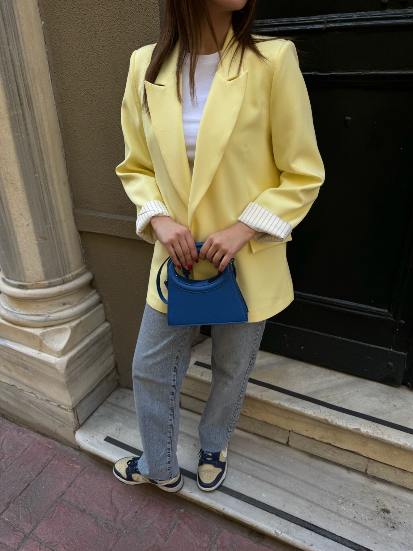 Çizgili Astar Sarı Blazer Ceket