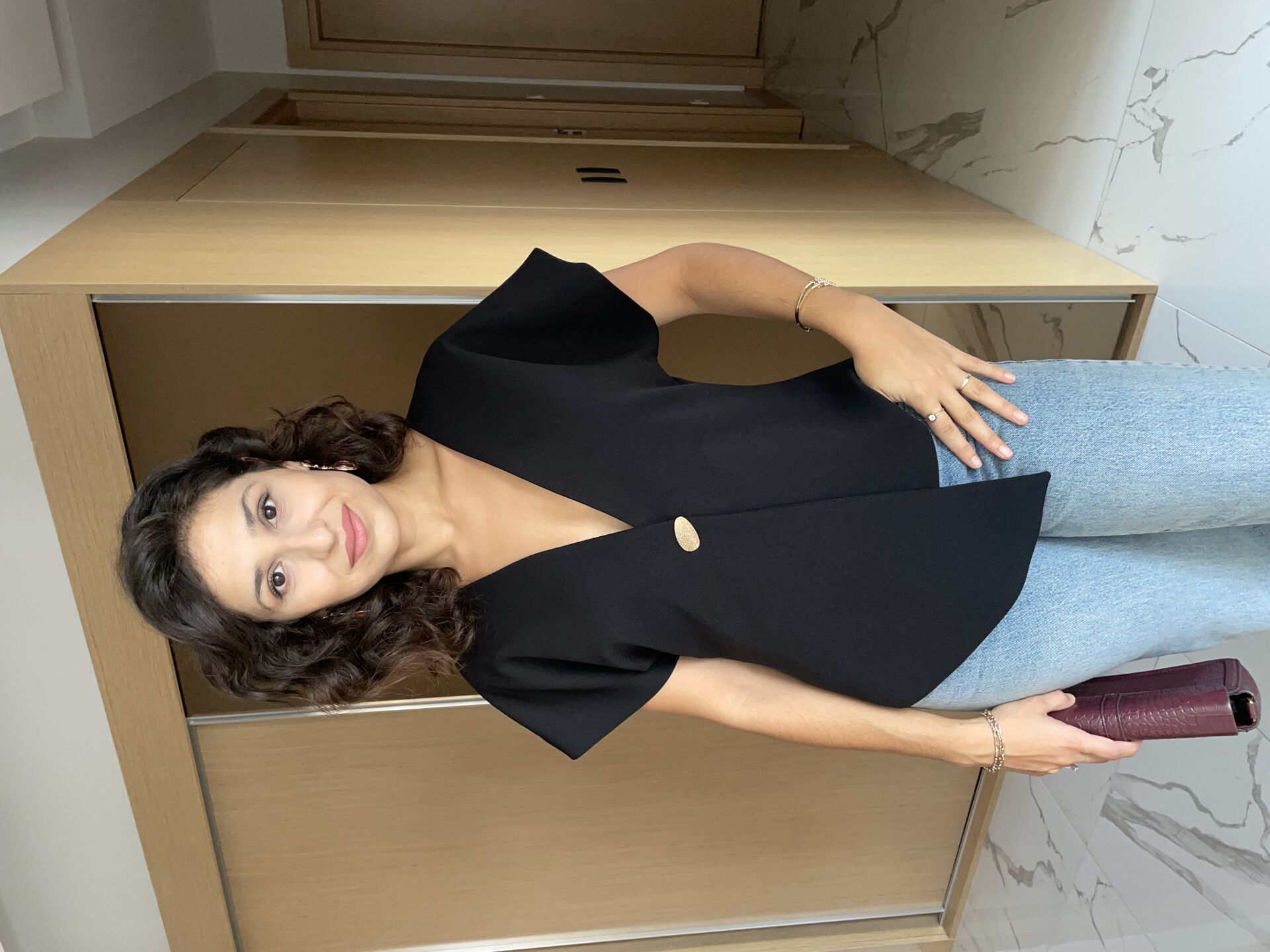 Gold Düğme Detay Siyah Bluz