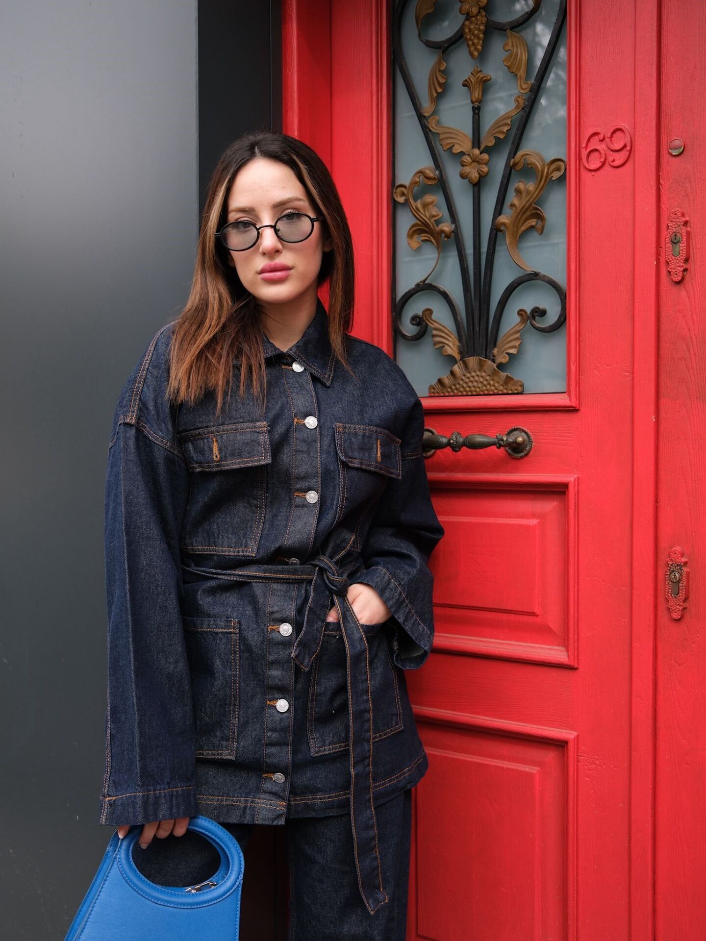 Kuşaklı Denim Takım